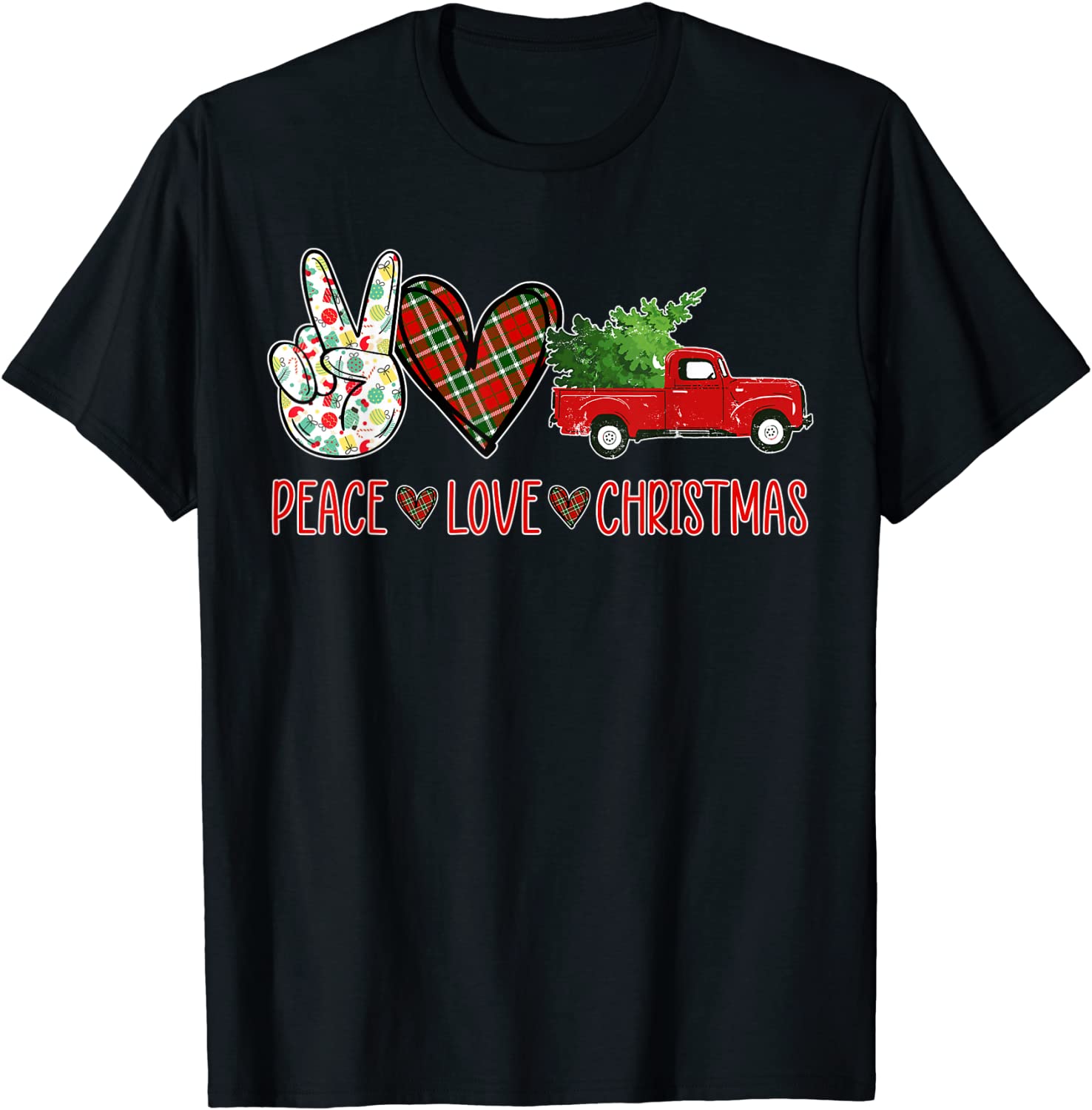 Peace Sign Love Buffalo Plaid Truck Christmas Tree Leopard 2021 T-Shirt