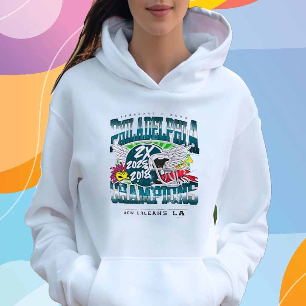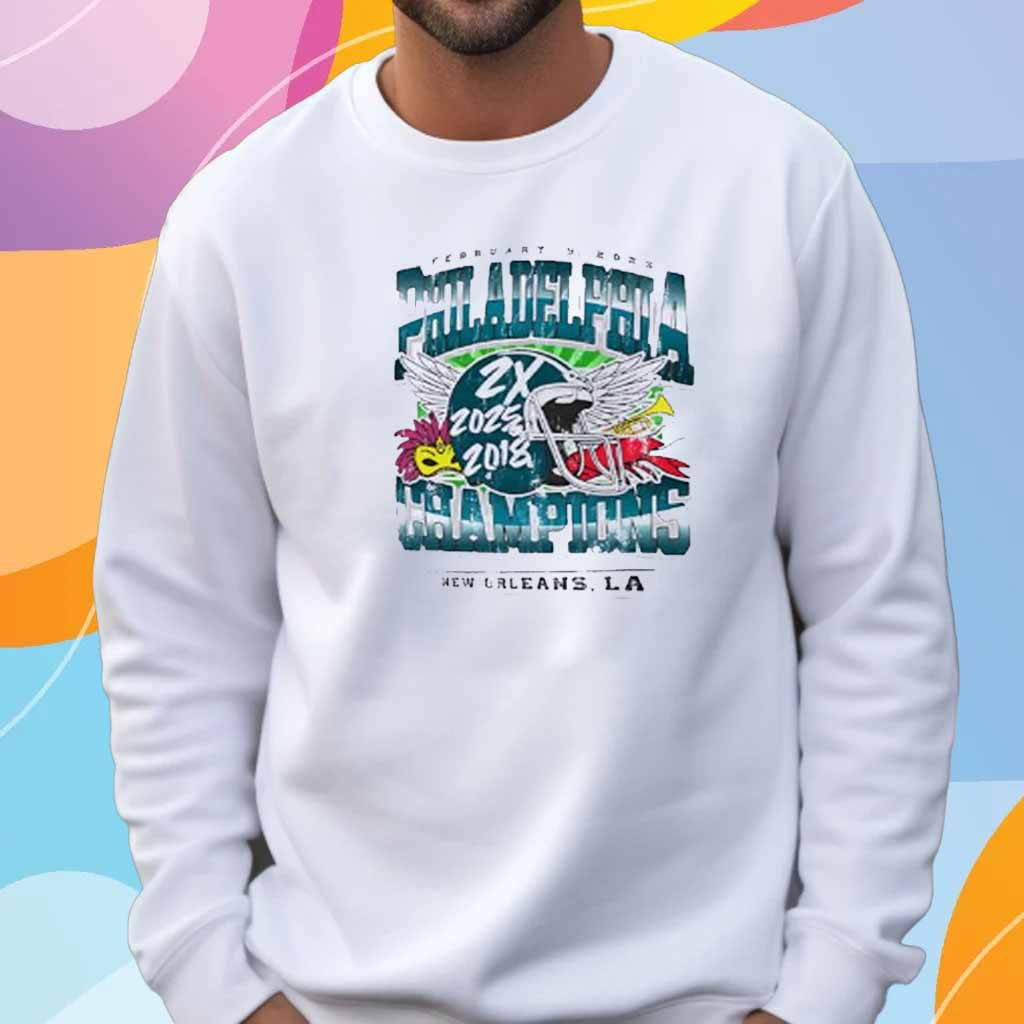 Philadelphia Eagles 2X 2018 2025 Super Bowl LIX Champions New Orleans LA T-Shirt