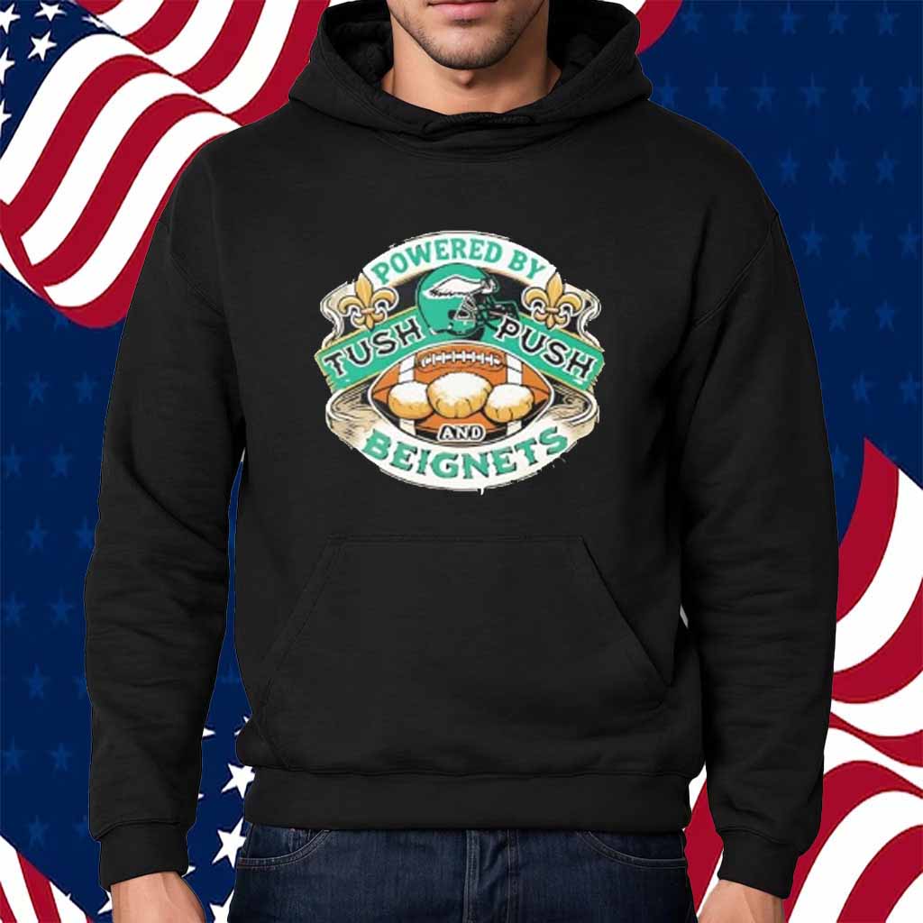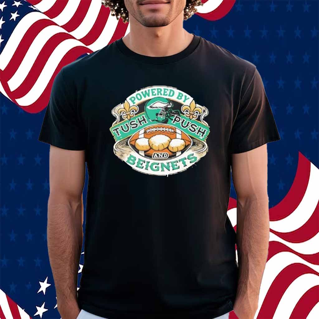 Philadelphia Eagles Super Bowl 2025 Shirt Powered By Tush Push And Beignets Funny Superbowl Shirt