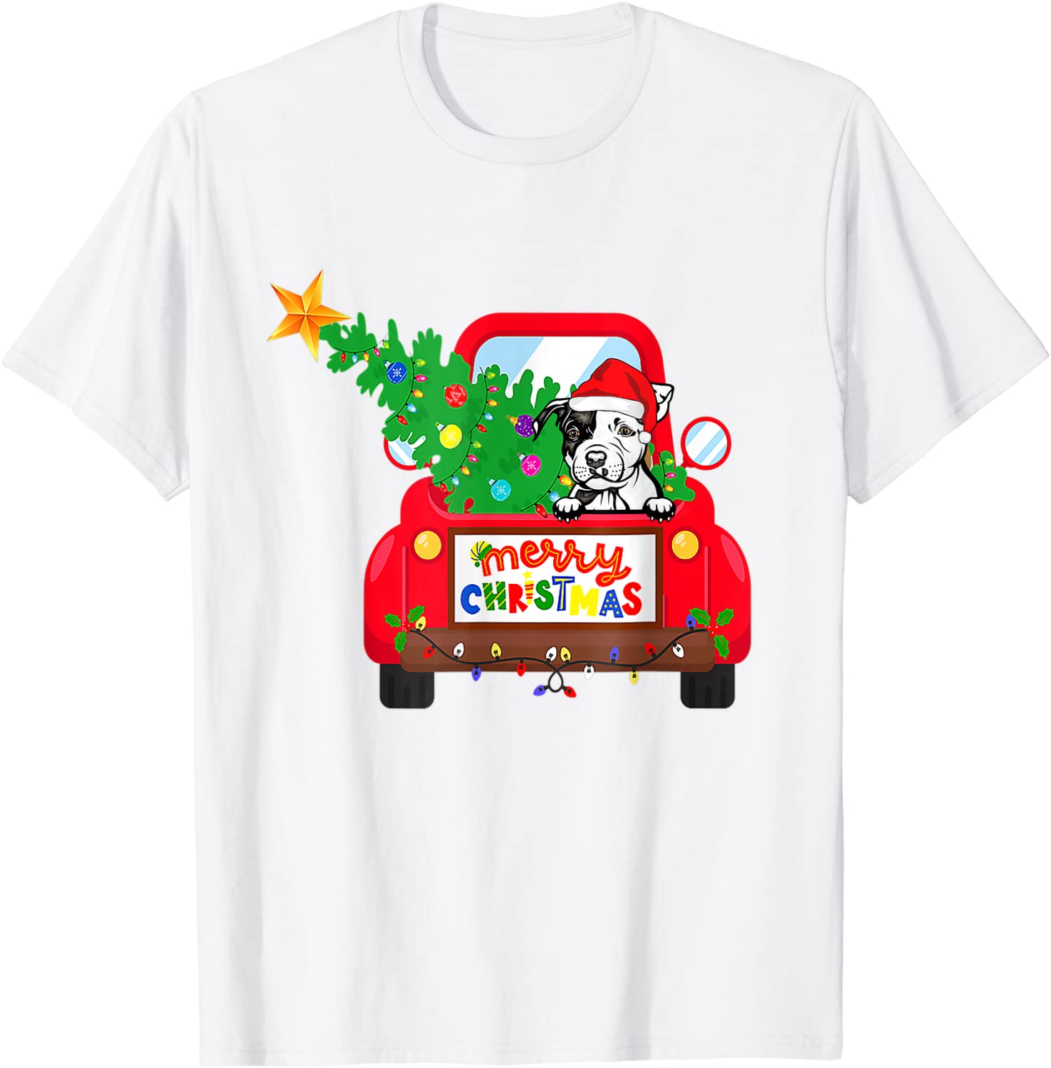Pit Bull Dog Riding Red Truck Christmas Pajama 2021 Shirt