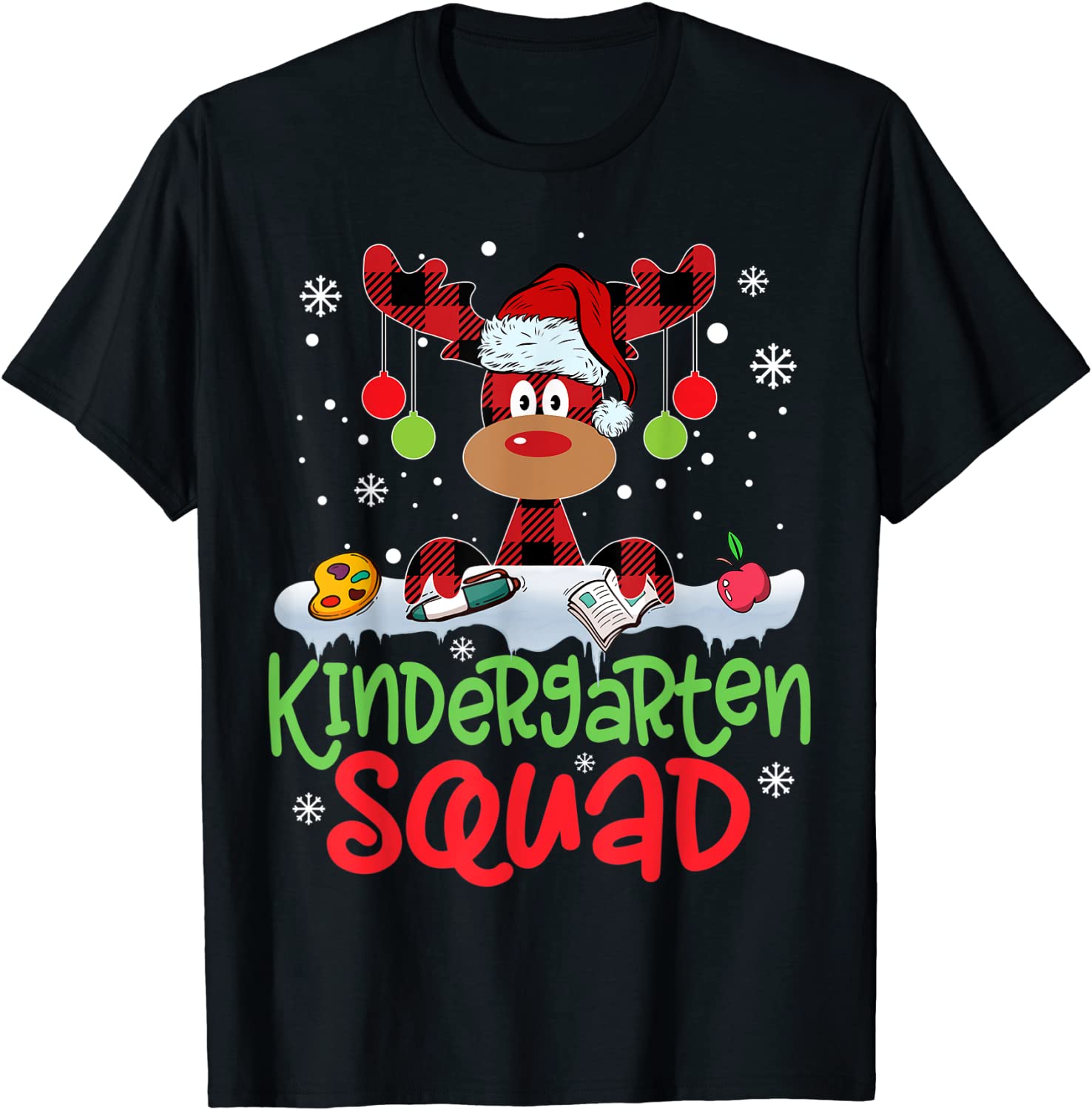 Plaid Reindeer Santa Hat Kindergarten Squad Teacher Xmas Classic Shirt