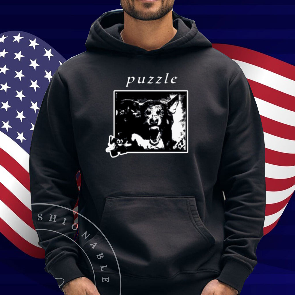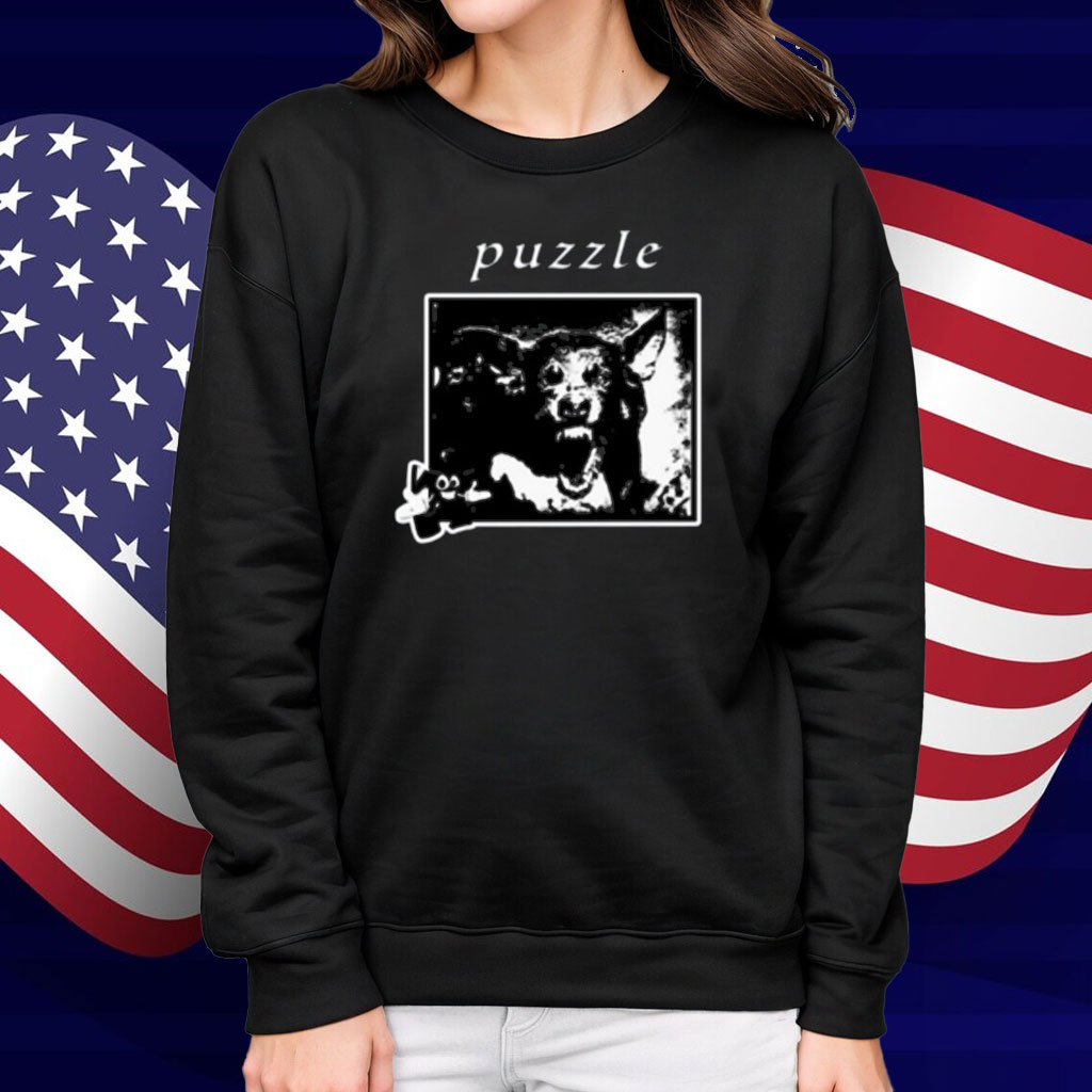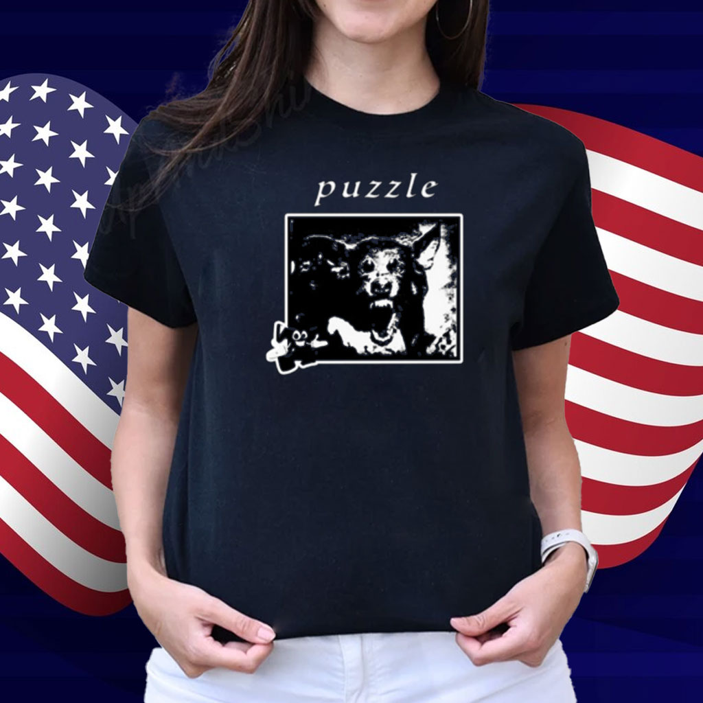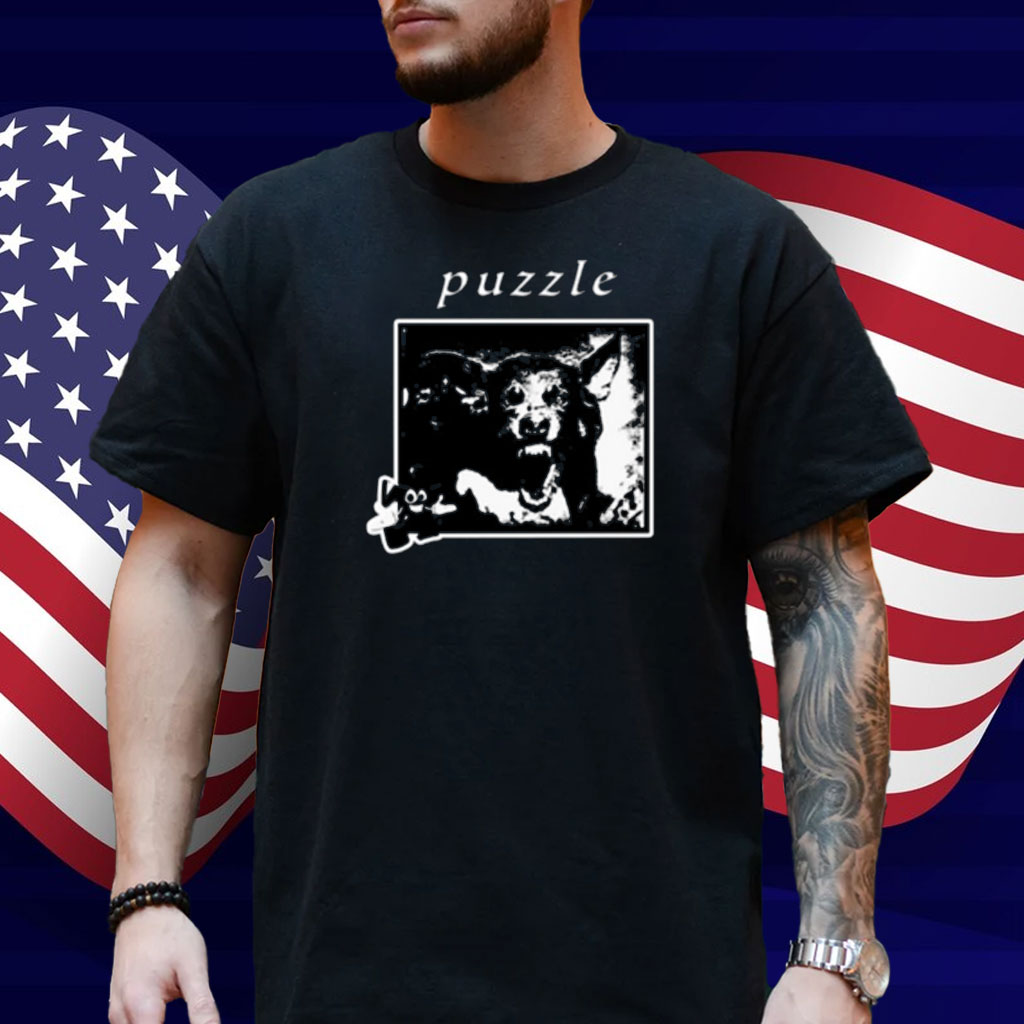 Puzzle Damage Collection Puzzle Dog Black Shirt