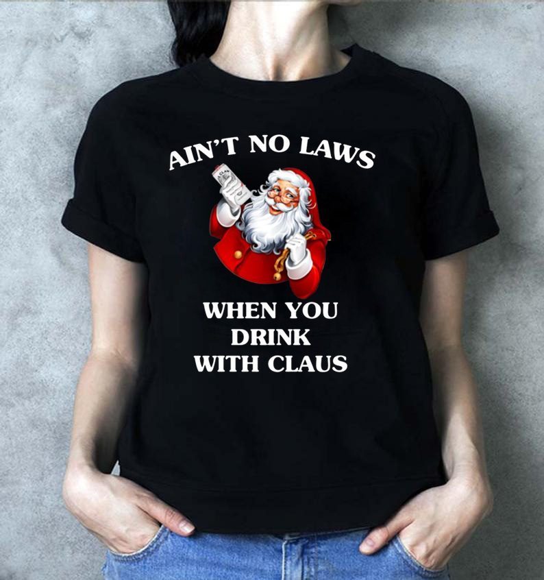 Santa Claus Ain’t No Laws When You Drink With Claus T-Shirt Perfect Birthday Gift Idea for Men / Women / Kids .Awesome present for dad, father, mom, brother, uncle, husband, wife, adult, son, youth, boy, girl, baby, teen, friend on Birthday / Christmas Day