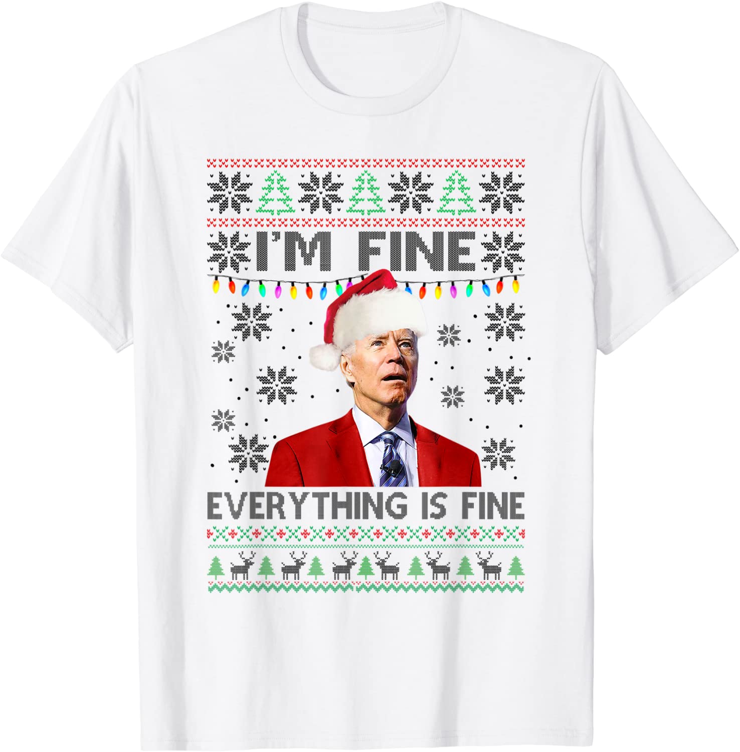 Santa Joe Biden I’m Fine Everything Is Fine Christmas Lights Classic Shirt