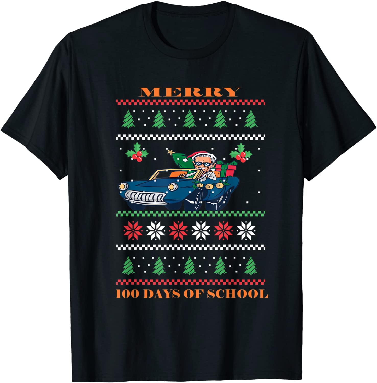 Santa Joe Biden Merry 100 Days Of School Ugly Happy Christmas Unisex Shirt