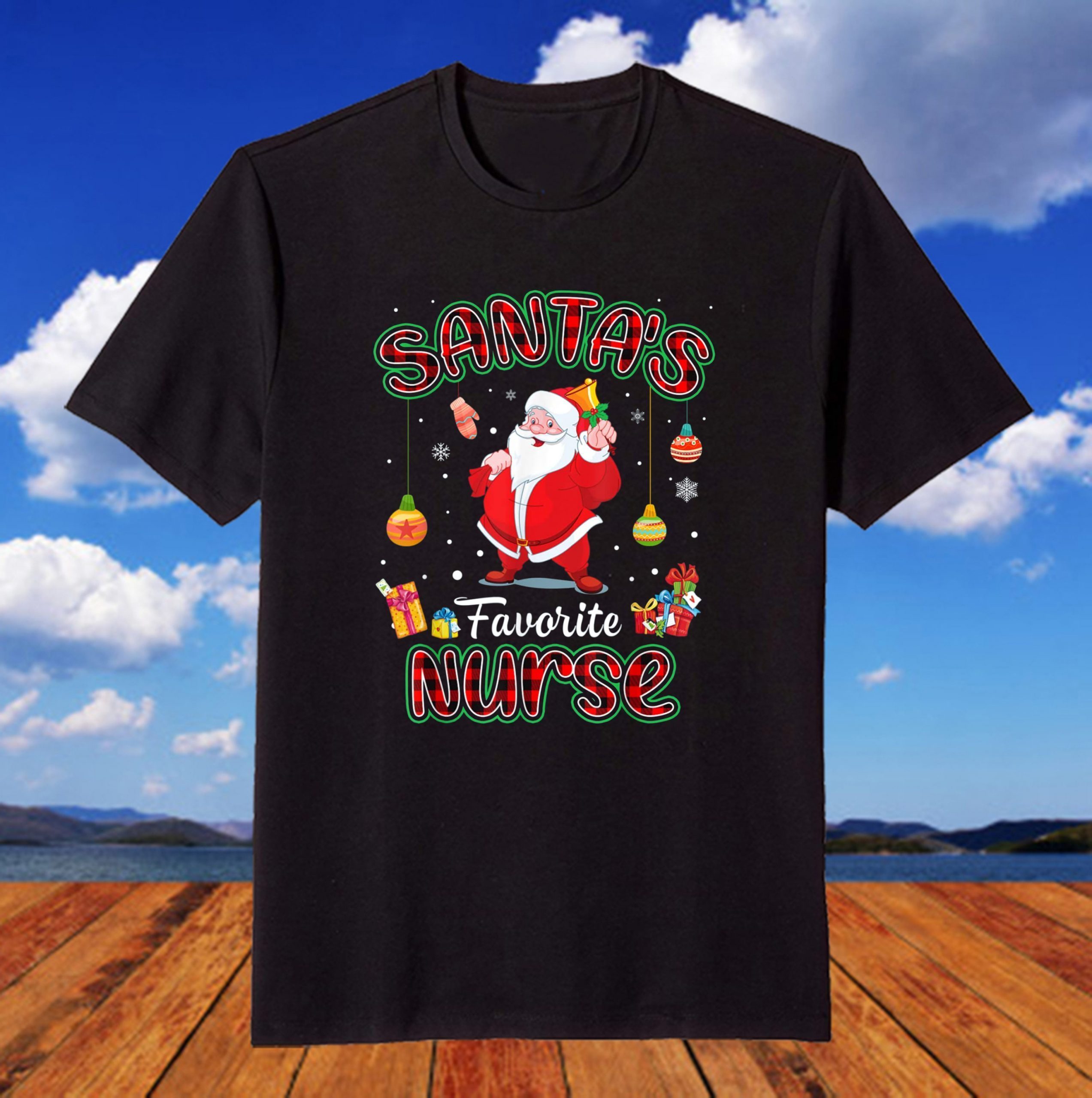Santa’s Favorite Nurse Santa Red Plaid Christmas T-Shirt