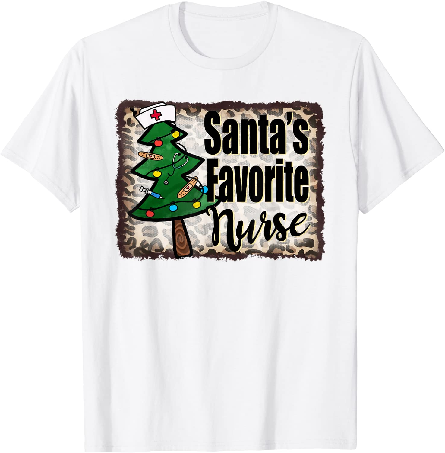 Santa’s Favorite Nurse Tree Christmas Nursing Leopard 2021 Shirt