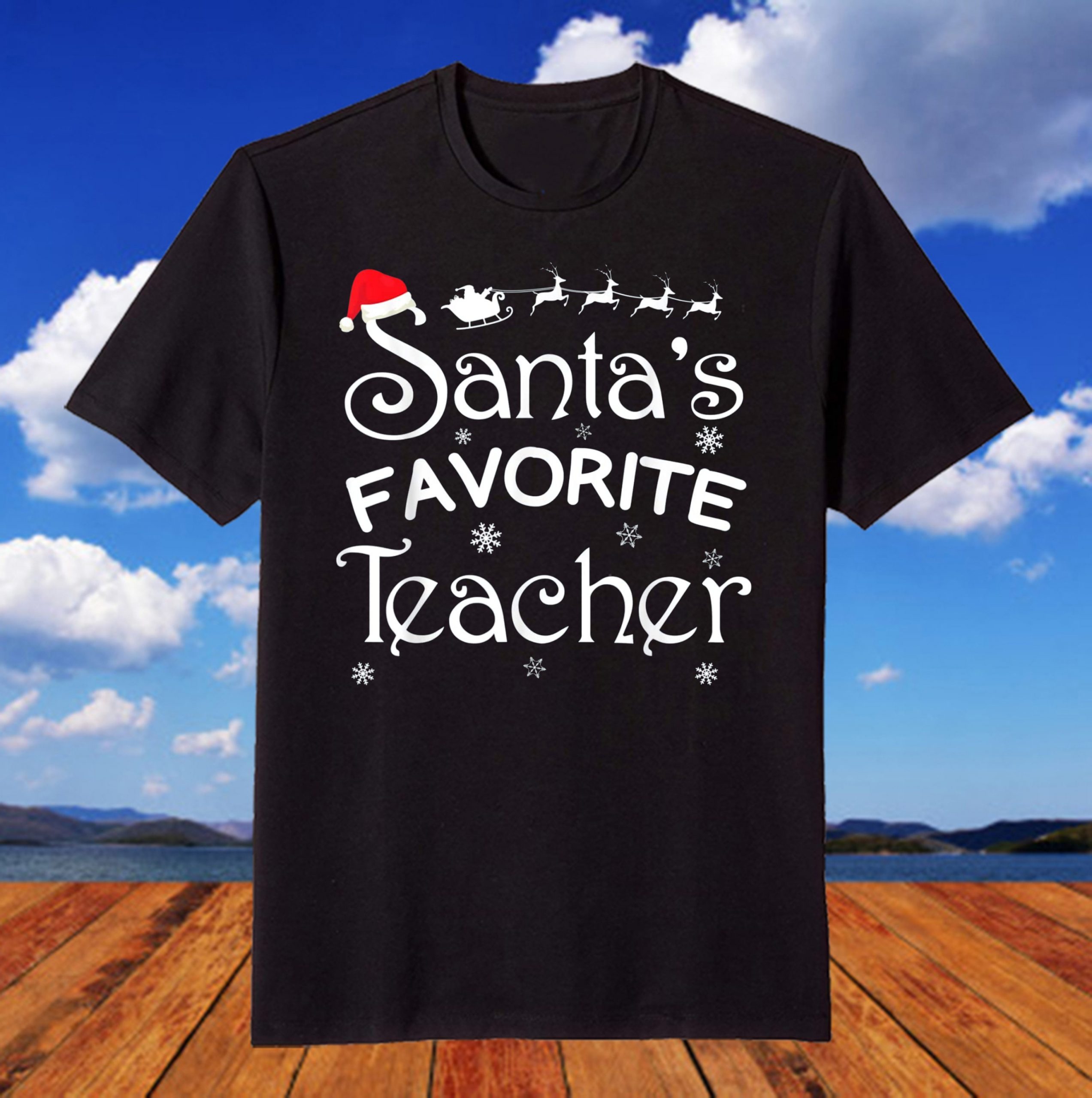Santa’s Favorite Teacher Christmas Santa Hat Lights Tee Shirt