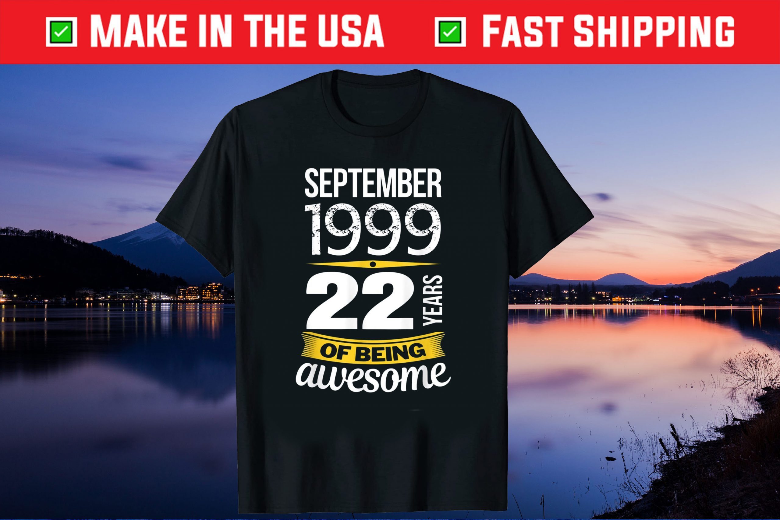 September 1999 22 Years Of Being Awesome 22st Birthday Us 2021 T-Shirt