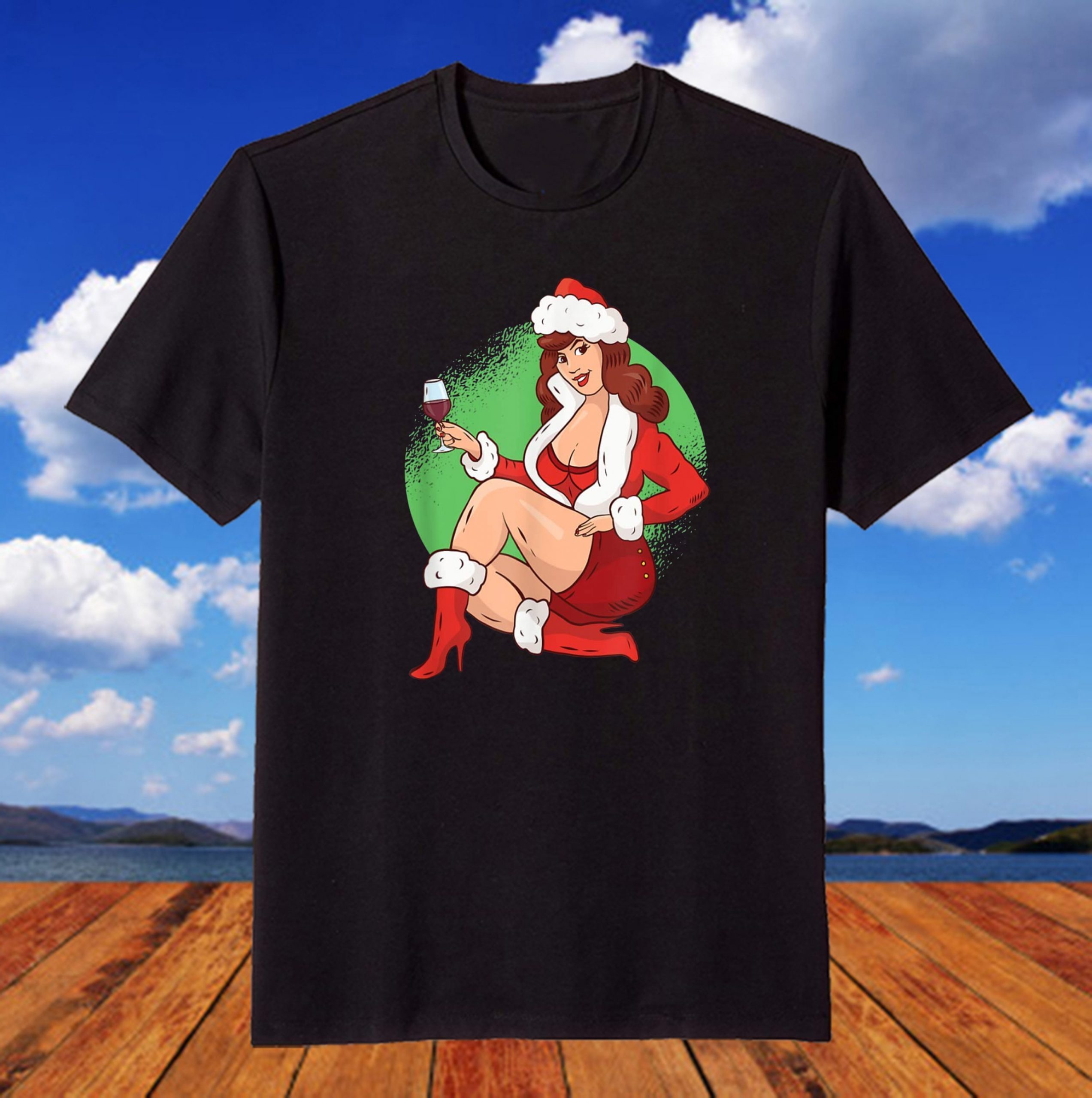 Sexy Pin Up Girl Santa Claus Costume High Heels Hot Pants T-Shirt