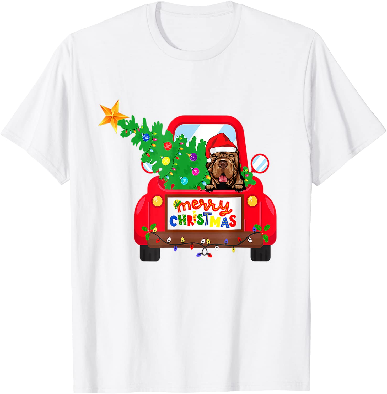 Shar Pei Dog Riding Red Truck Christmas Pajama Classic Shirt