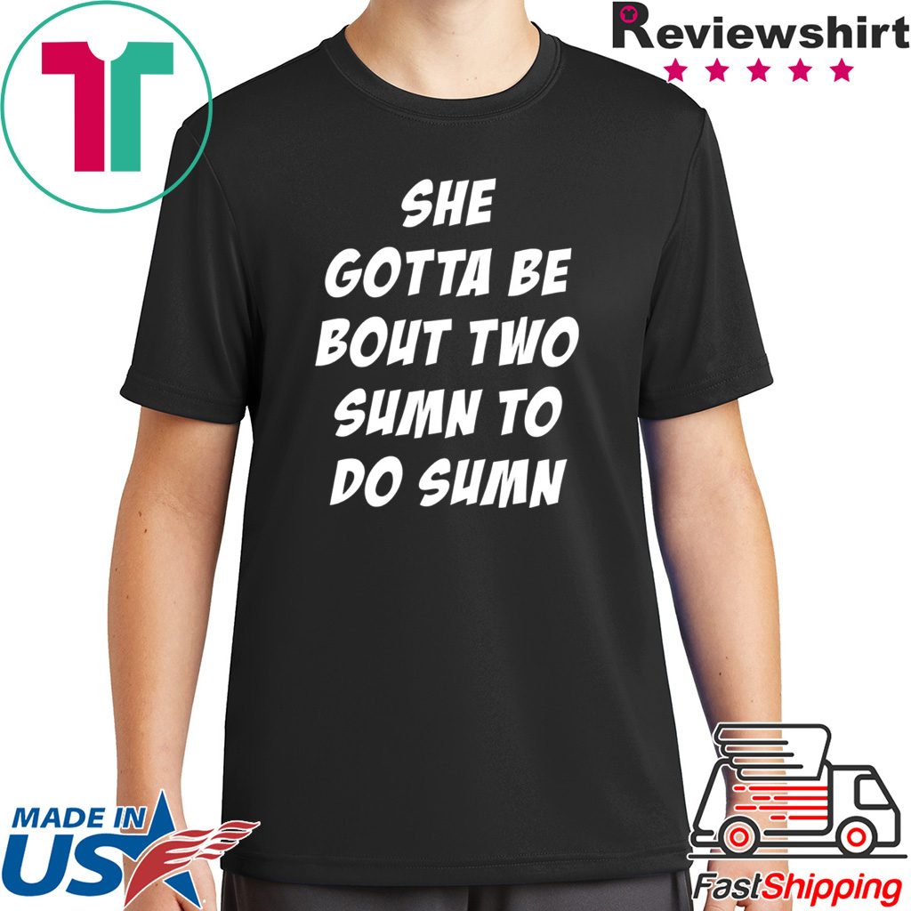 She Gotta be Bout Two Sumn To Do Sumn Offcial T-Shirt Perfect Birthday Gift Idea for Men / Women / Kids .Awesome present for dad, father, mom, brother, uncle, husband, wife, adult, son, youth, boy, girl, baby, teen, friend on Birthday / Christmas Day