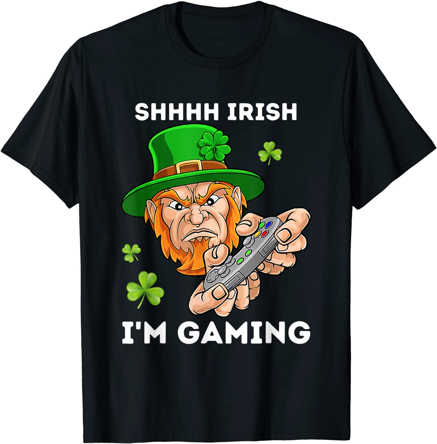 Shhhh I’m Gaming Angry Leprechaun St Patricks Day Gift Shirt