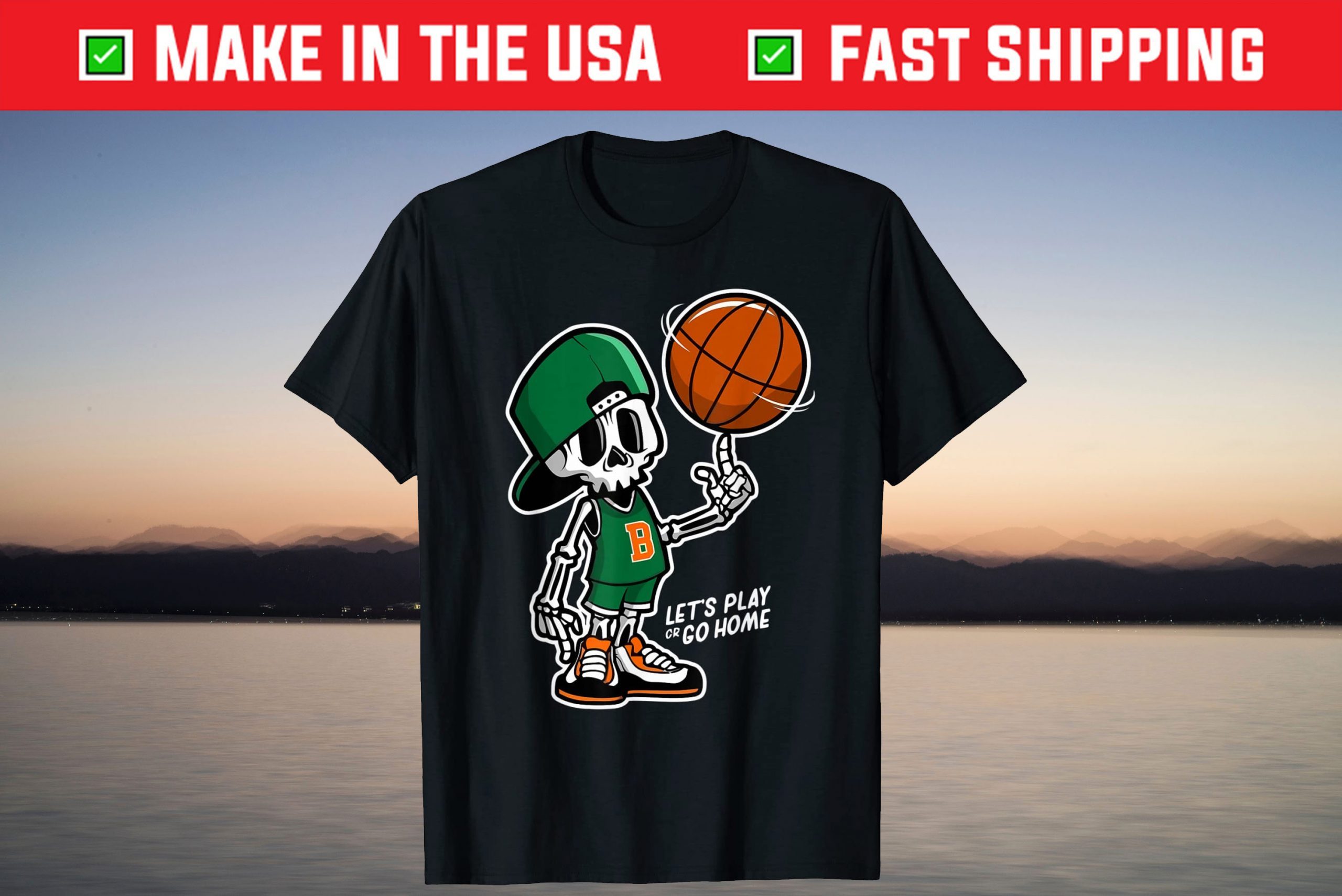 Skeleton Skull Play Basketball Graffiti Style T-Shirt