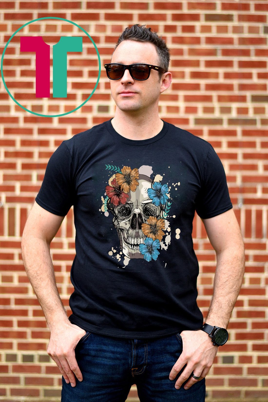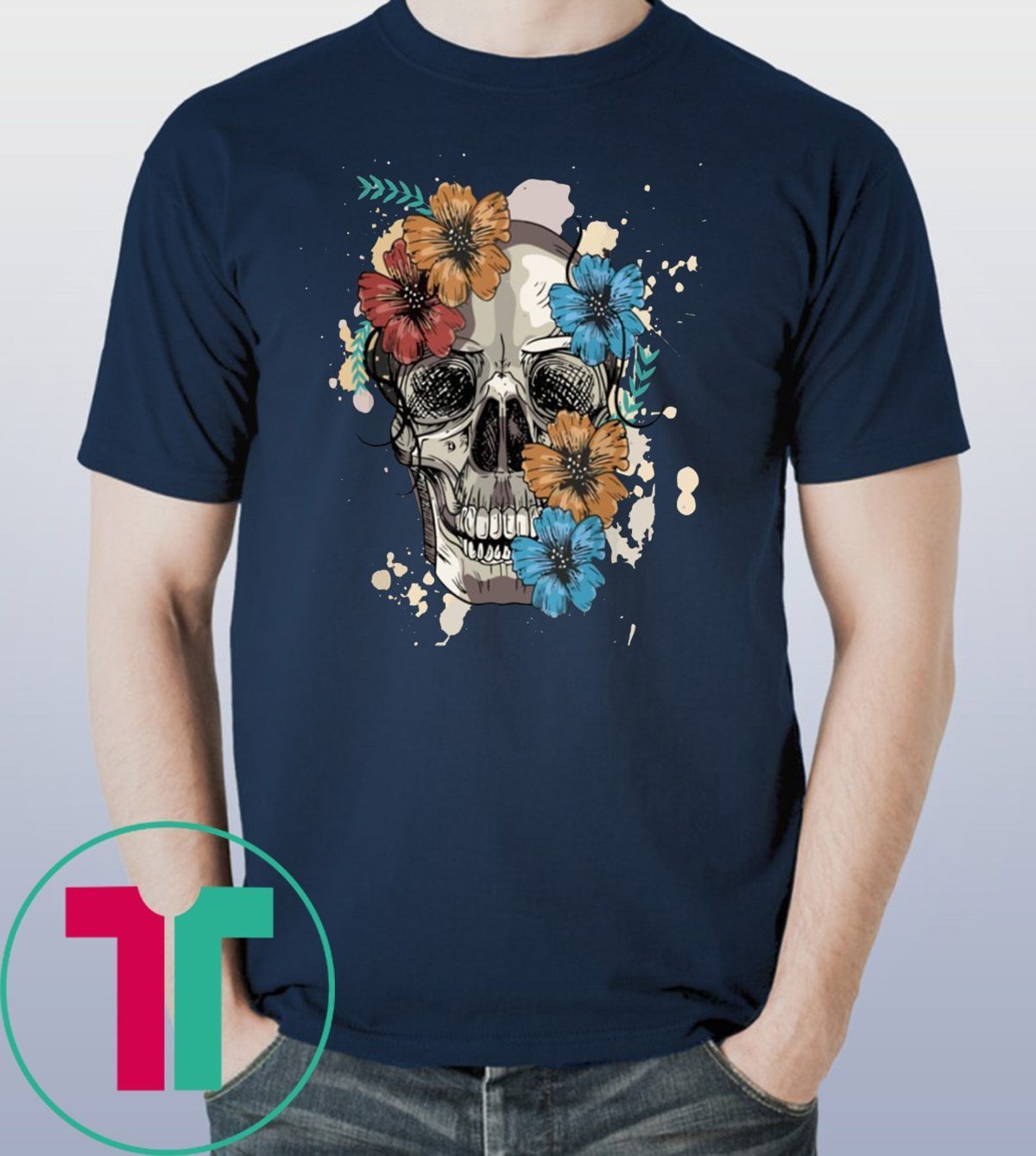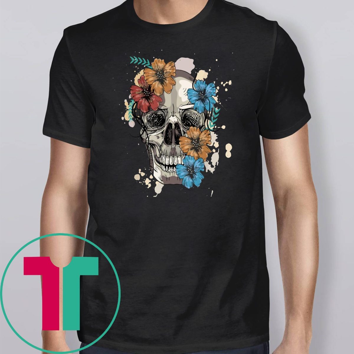 Skull and Flowers Unisex T-Shirt. Perfect Birthday Gift Idea for Men / Women / Kids .Awesome present for dad, father, mom, brother, uncle, husband, wife, adult, son, youth, boy, girl, baby, teen, friend on Birthday / Christmas Day