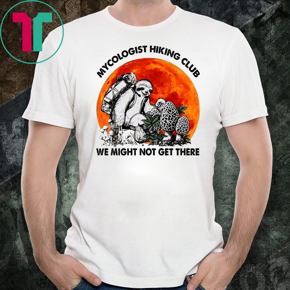 Sloth Mycologist Hiking Club We Might Not Get There T-Shirt Perfect Birthday Gift Idea for Men / Women / Kids .Awesome present for dad, father, mom, brother, uncle, husband, wife, adult, son, youth, boy, girl, baby, teen, friend on Birthday / Christmas Day