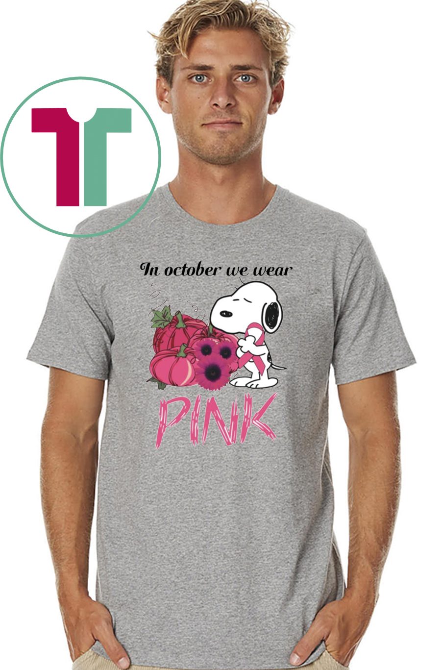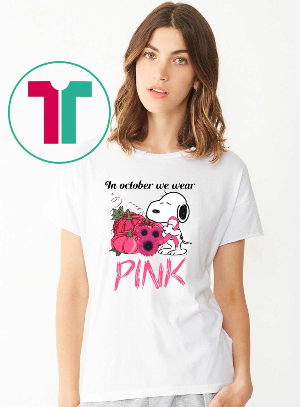 Snoopy In October We Wear Pink Breast Cancer Awareness T-Shirt Perfect Birthday Gift Idea for Men / Women / Kids .Awesome present for dad, father, mom, brother, uncle, husband, wife, adult, son, youth, boy, girl, baby, teen, friend on Birthday / Christmas Day