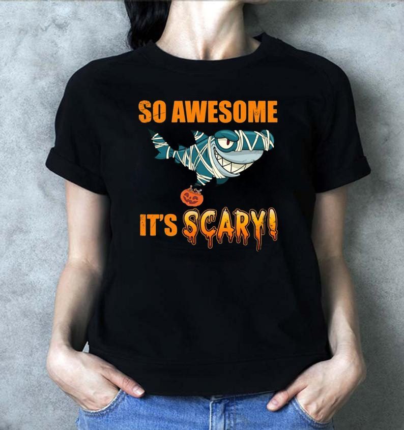 So Awesome It’s Scary Mummy Shark Halloween Kid T-shirt Perfect Birthday Gift Idea for Men / Women / Kids .Awesome present for dad, father, mom, brother, uncle, husband, wife, adult, son, youth, boy, girl, baby, teen, friend on Birthday / Christmas Day
