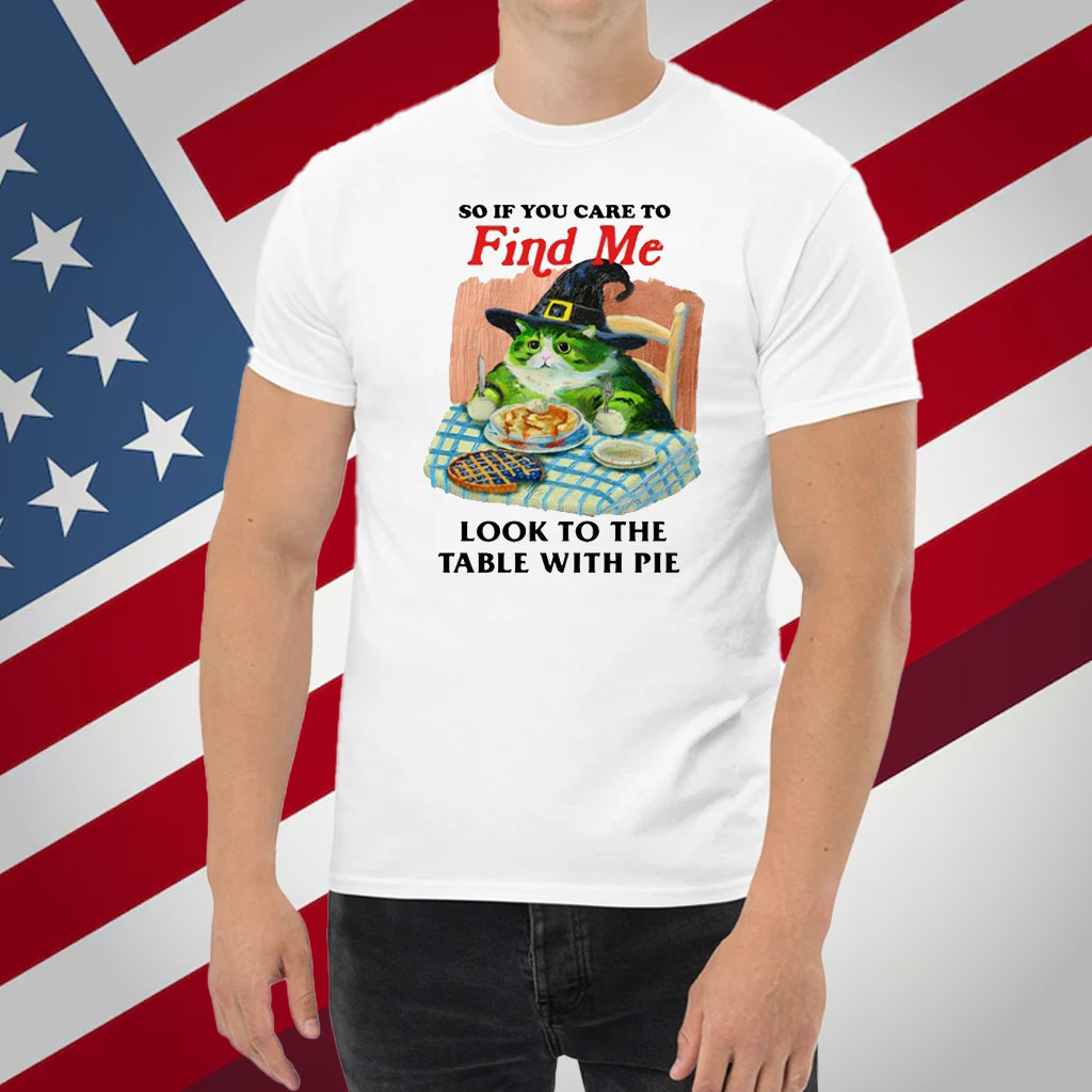 Embrace the sweet and comforting spirit of pie with our “So If You Care To Find Me Look To The Table With Pie” T-shirt. Order yours today and let the nostalgia begin!