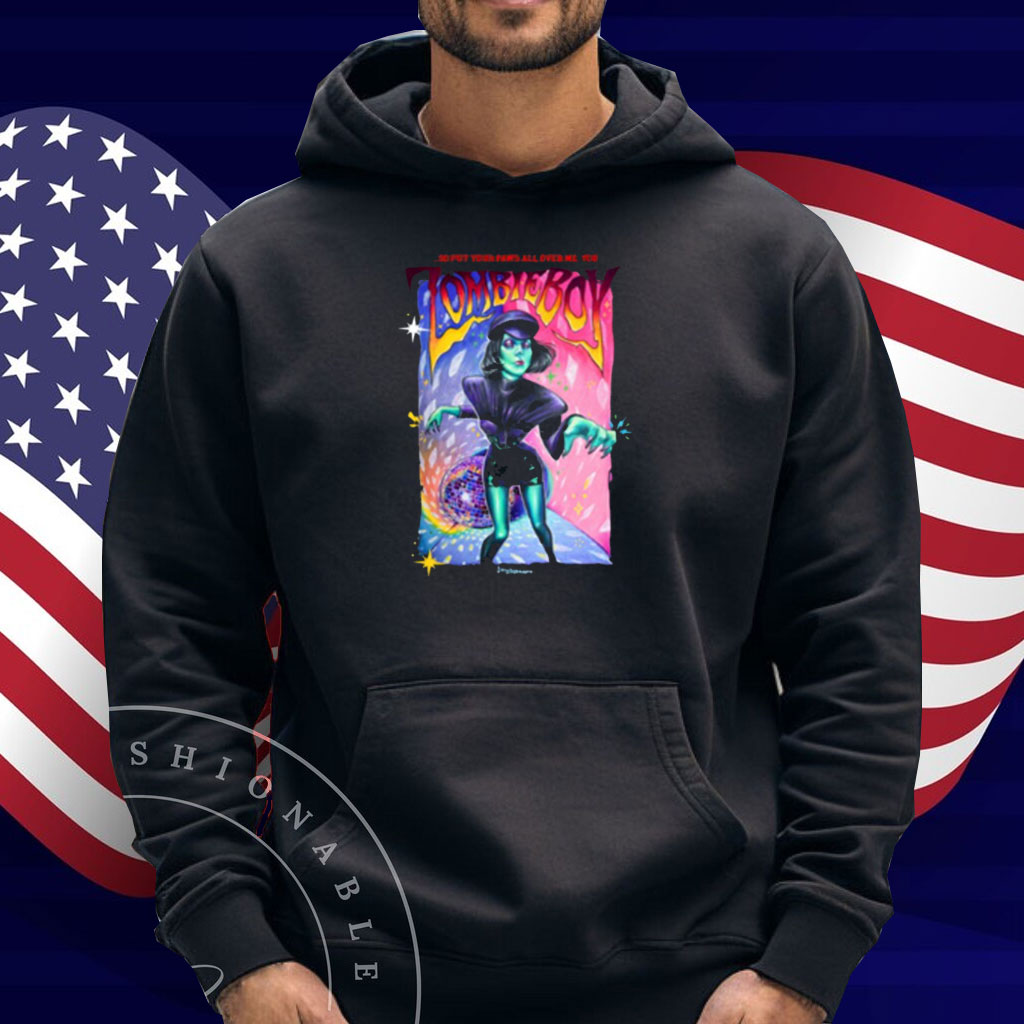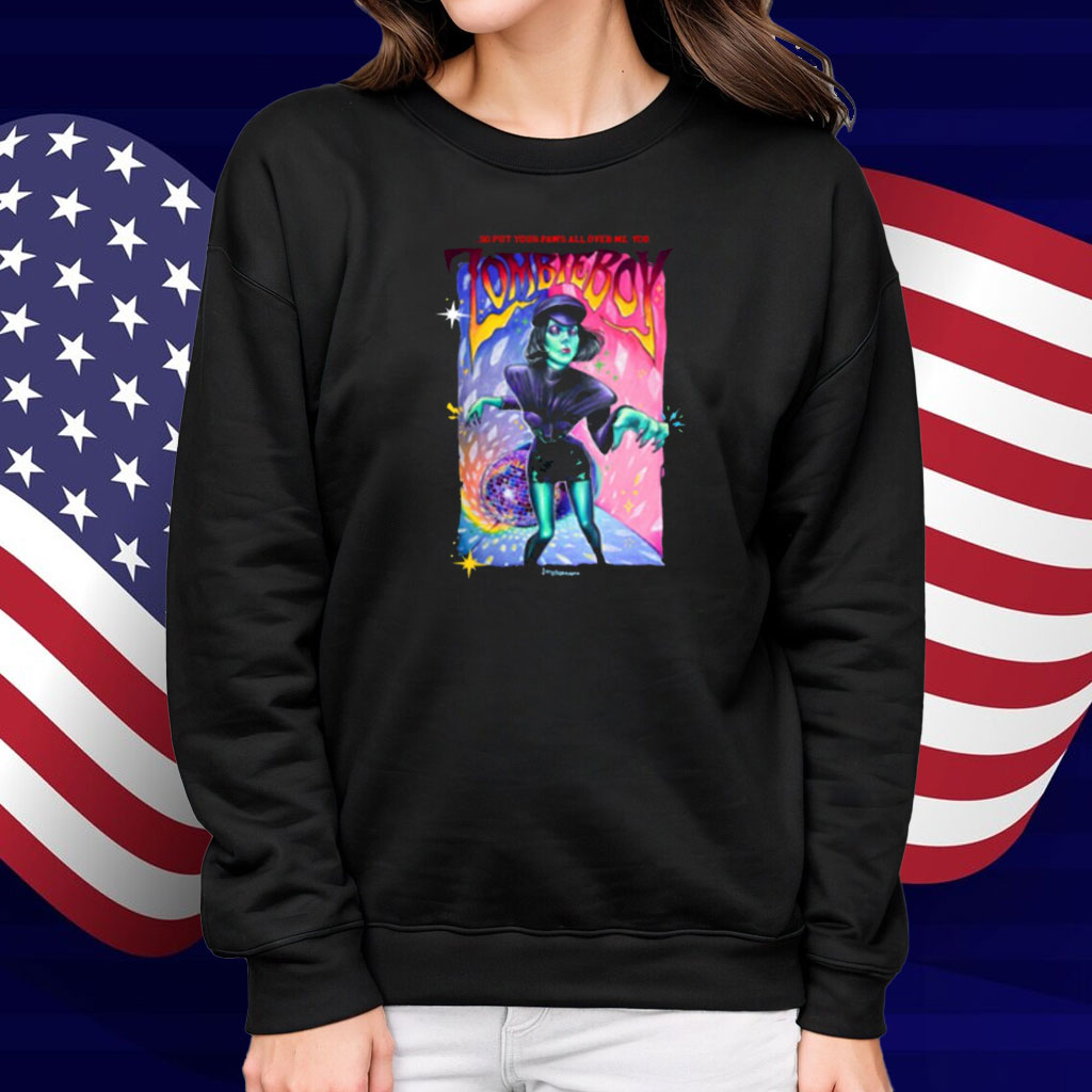 Available in various styles, including t-shirts, hoodies, long sleeves, and v-neck tees, the “So Put Your Paws All Over Me You Zombieboy” Shirt caters to diverse preferences. It’s an ideal choice for those who appreciate the intersection of pop culture and artistic expression.