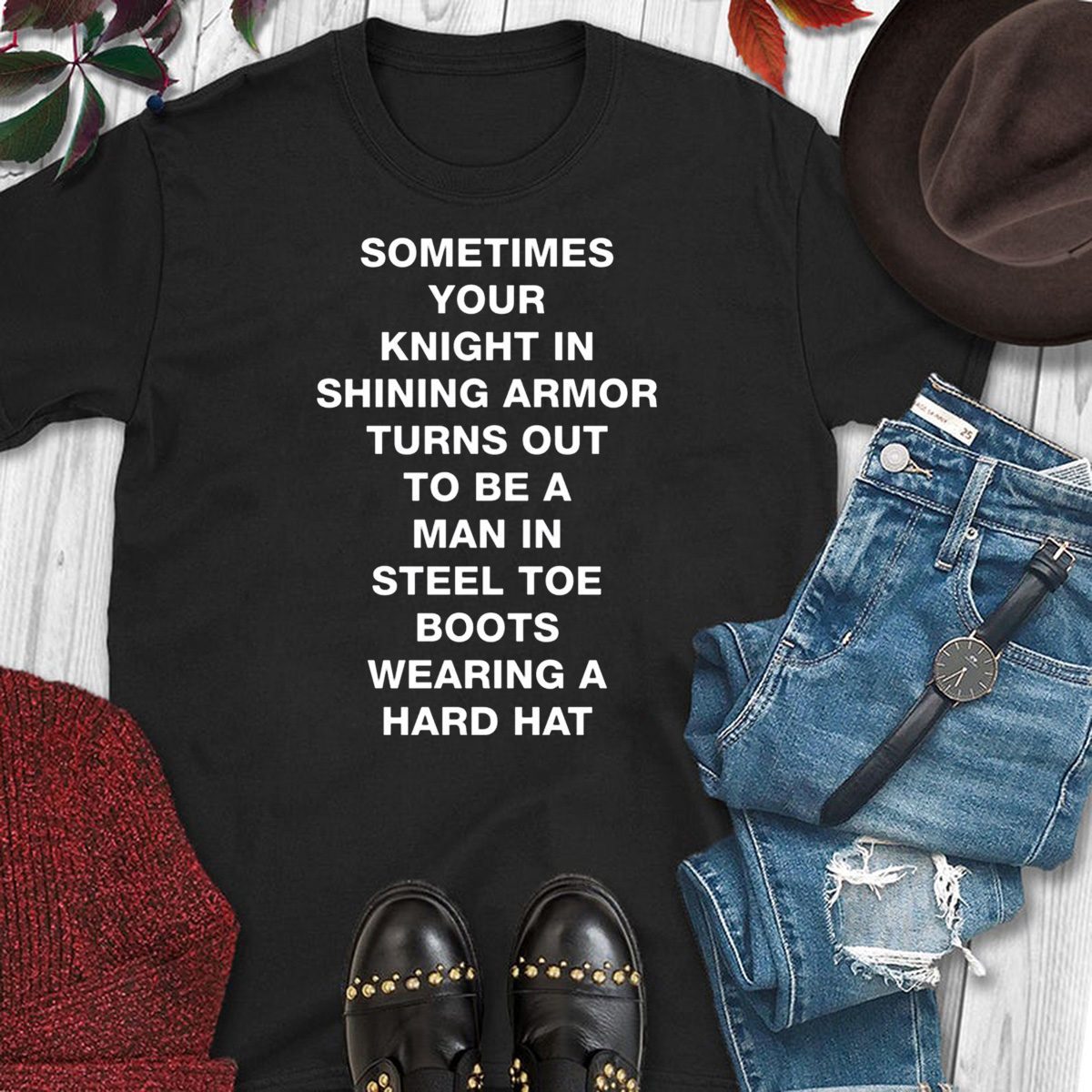 Sometimes your knight in shining armor turns out to be a man in steel toe boots wearing a hard hat shirt, hoodie, long sleeve…