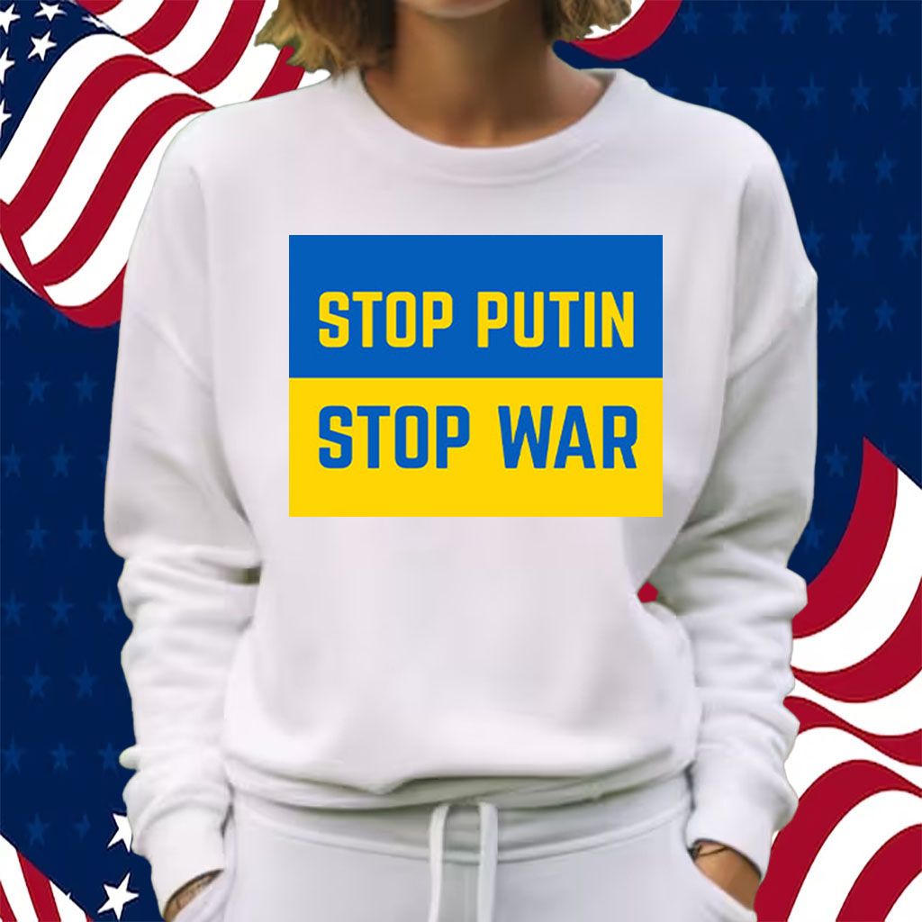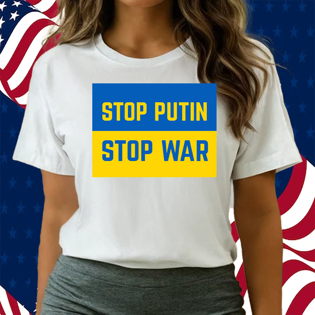 Stop Putin, Stop War, Support Ukraine Blue & Yellow T-Shirt